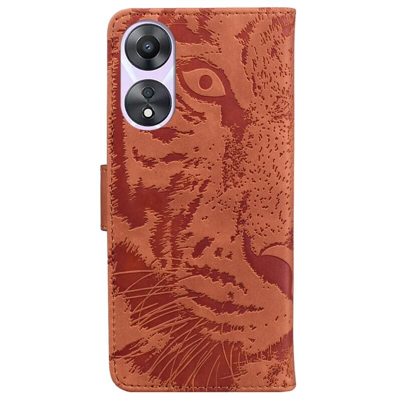 Για OPPO A58 Tiger ανάγλυφο μοτίβο Flip δέρμα τηλέφωνο υπόθεση (Καφέ)