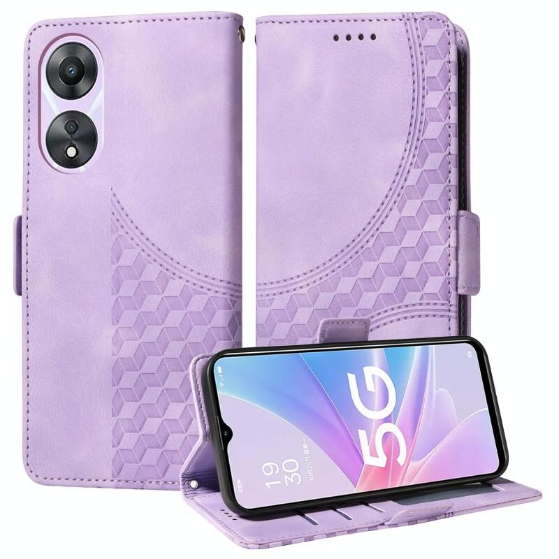 Για OPPO A58X 5G ανάγλυφο Rhombus Starry δερμάτινη θήκη τηλεφώνου (μωβ)