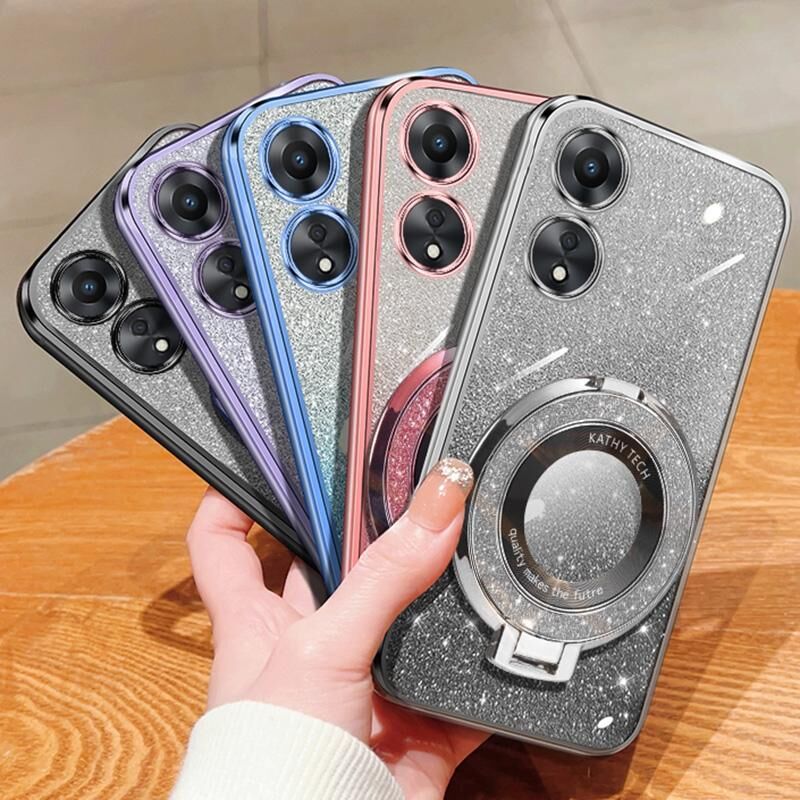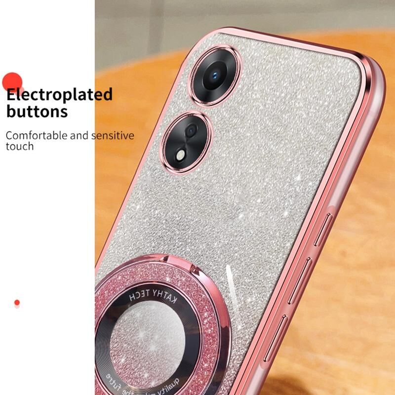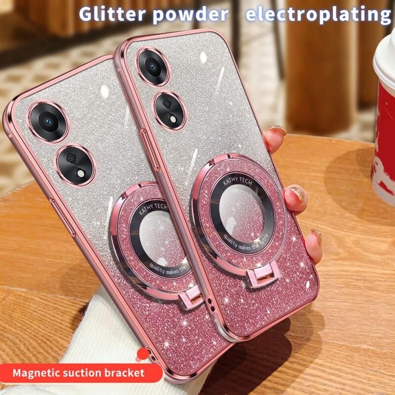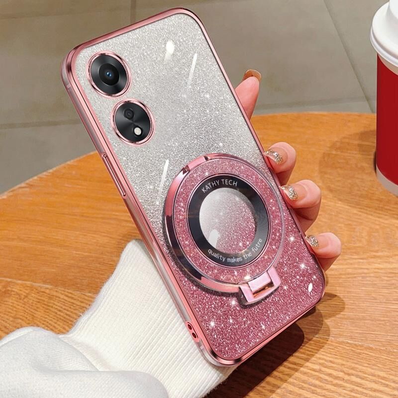 Θήκη τηλεφώνου TPU με στρογγυλό στήριγμα, επιμετάλλωση, διαβαθμισμένη λάμψη για OPPO A58x / A78 5G (ρόζ)