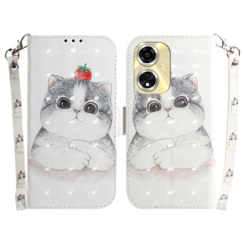 Θήκη τηλεφώνου δερμάτινη, οριζόντια, αναδιπλούμενη, 3D με χρώματα για OPPO A59 5G / A2M (Χαριτωμένη Γάτα)