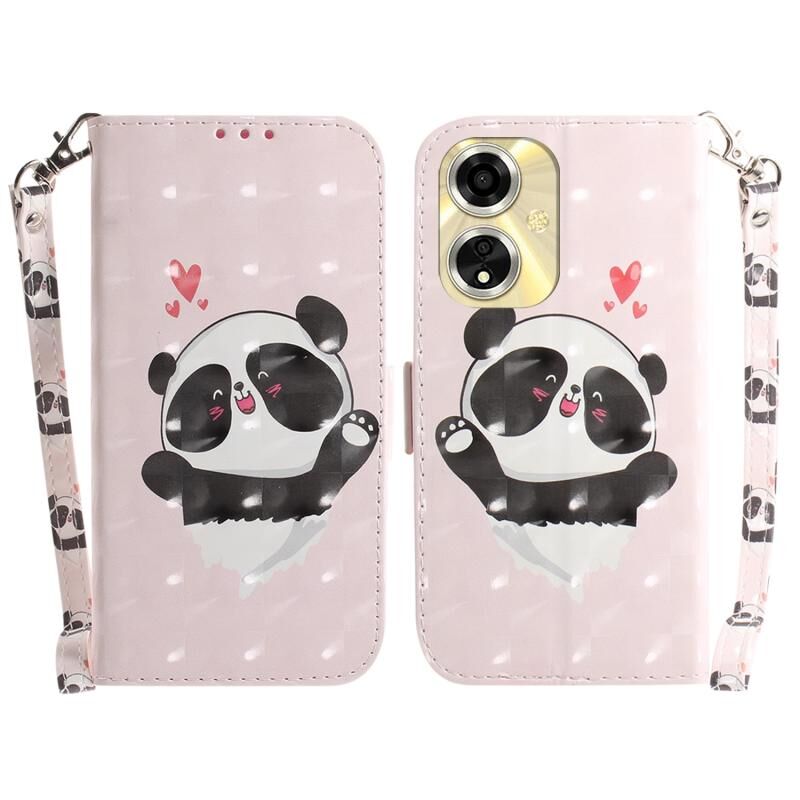 Θήκη τηλεφώνου από δέρμα με οριζόντιο άνοιγμα και 3D έγχρωμο σχέδιο για OPPO A59 5G / A2M (Heart Panda)