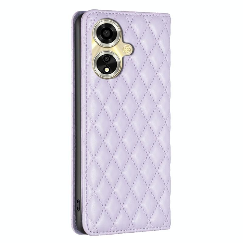 Για OPPO A59 5G Diamond Lattice μαγνητική δερμάτινη θήκη Flip τηλέφωνο (μωβ)