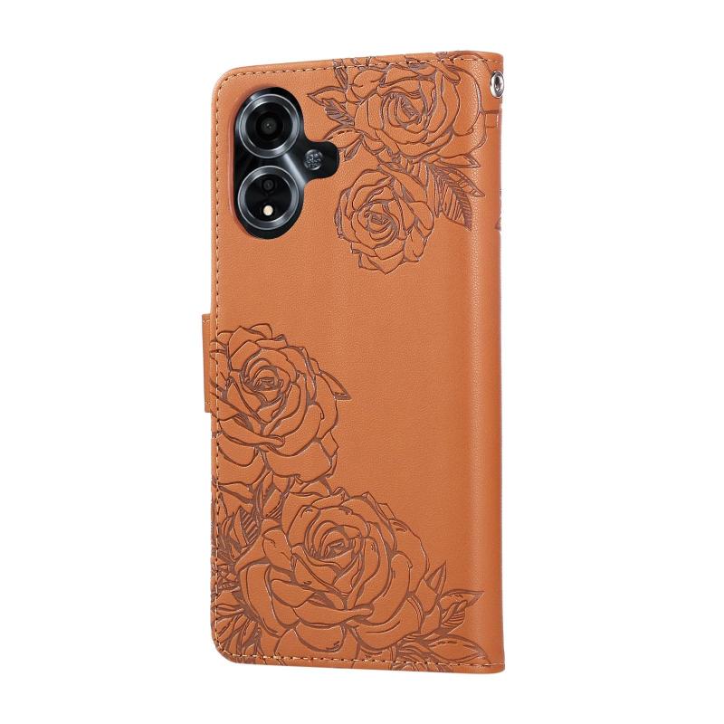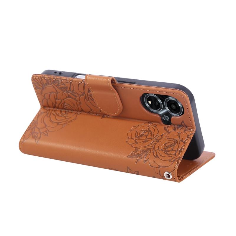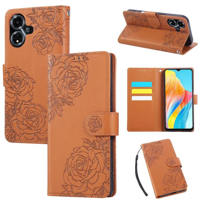 For OPPO A59 5G Global Rose Flower Embossed 3-Card Slots Leather Phone Case(Brown)