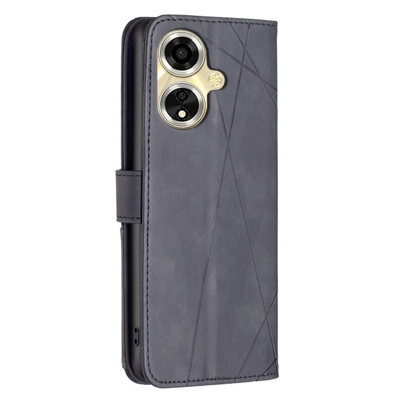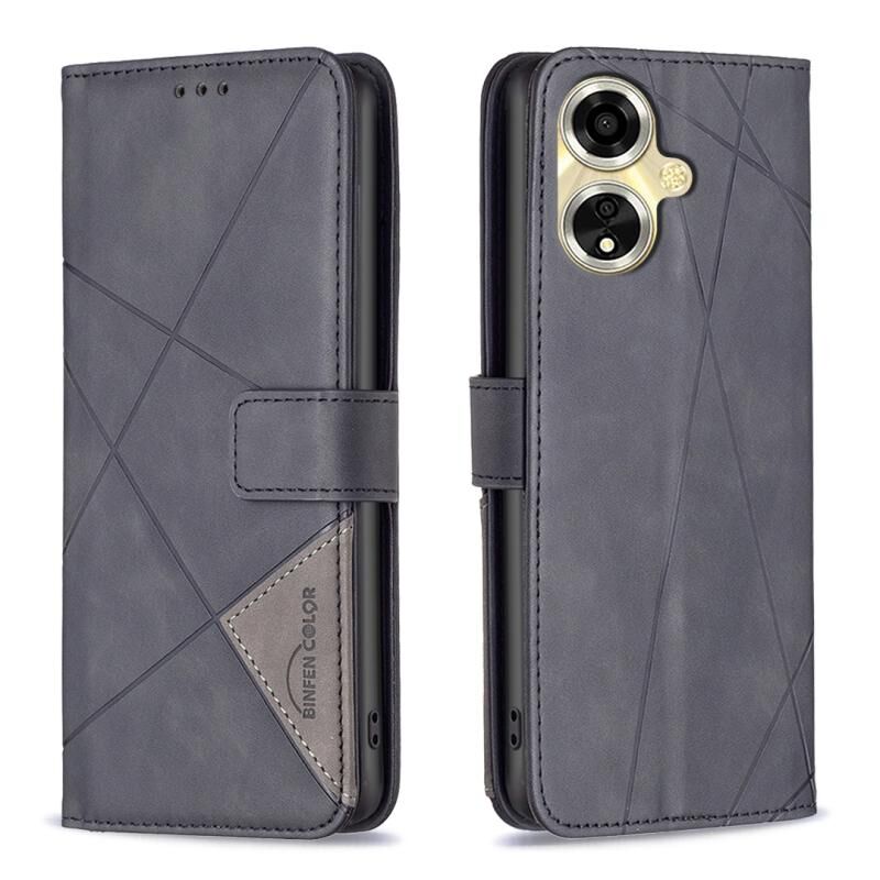 Θήκη τηλεφώνου από δέρμα με υφή ρόμβου και μαγνητικό κούμπωμα για OPPO A59 5G (Μαύρο)