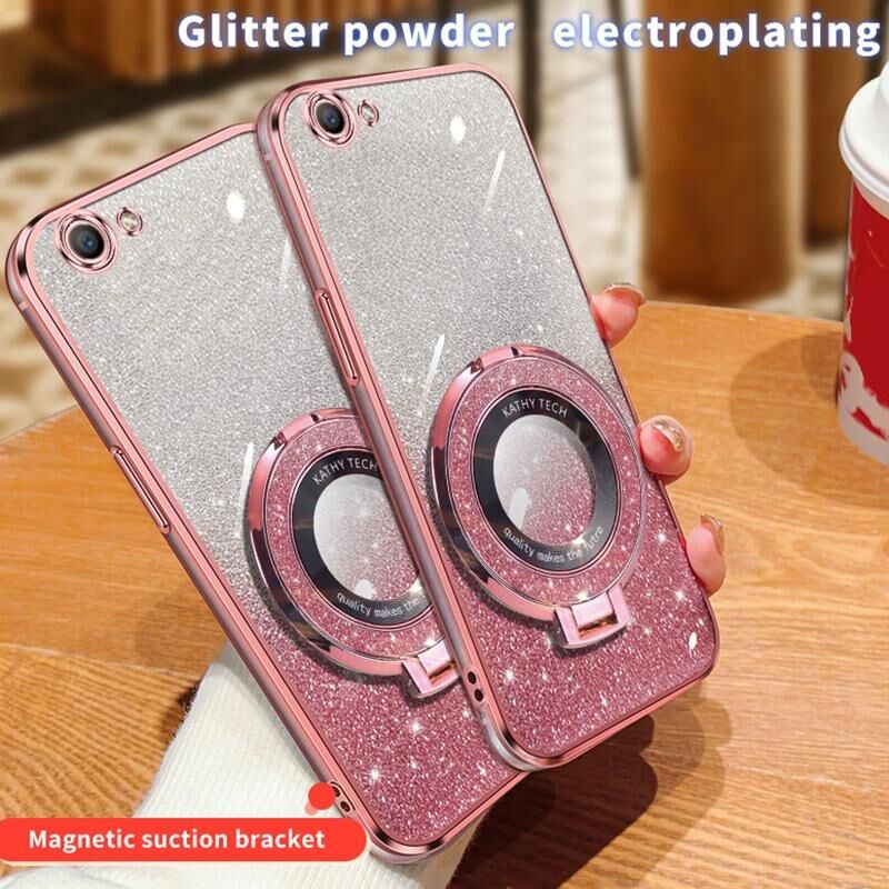 Θήκη τηλεφώνου TPU με στρογγυλό στήριγμα, γυαλιστερό ντεγκραντέ με επιμετάλλωση για OPPO A59 (ρόζ)