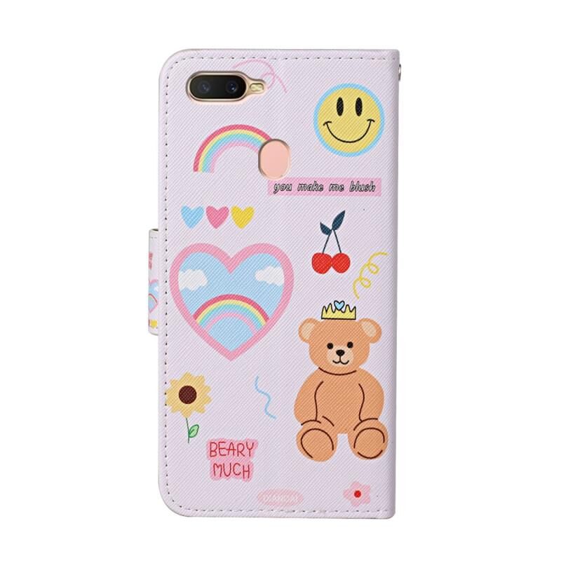 Θήκη δέρματος οριζόντιας αναδίπλωσης με σχέδιο πολύχρωμης ζωγραφικής για OPPO A5S με βάση & υποδοχές καρτών & πορτοφόλι (Αρκούδα)