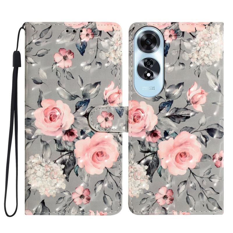 Θήκη τηλεφώνου από δέρμα με τρισδιάστατο σχέδιο για OPPO A60 (Ροζ Μπλε Μάρμαρο 3D)