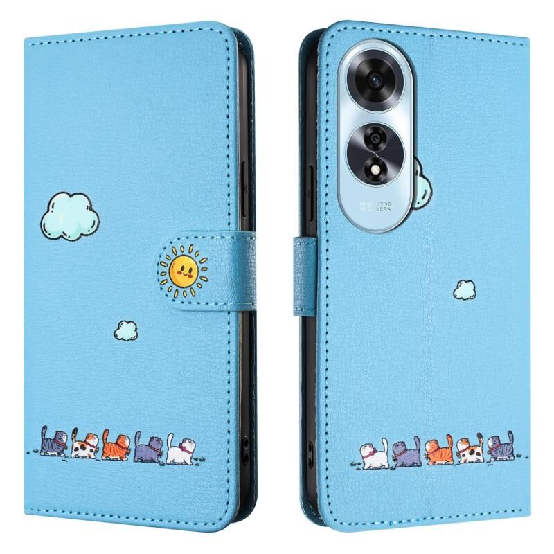 Θήκη τηλεφώνου από δέρμα με σχέδια καρτούν γάτας για OPPO A60 4G (Μπλε)