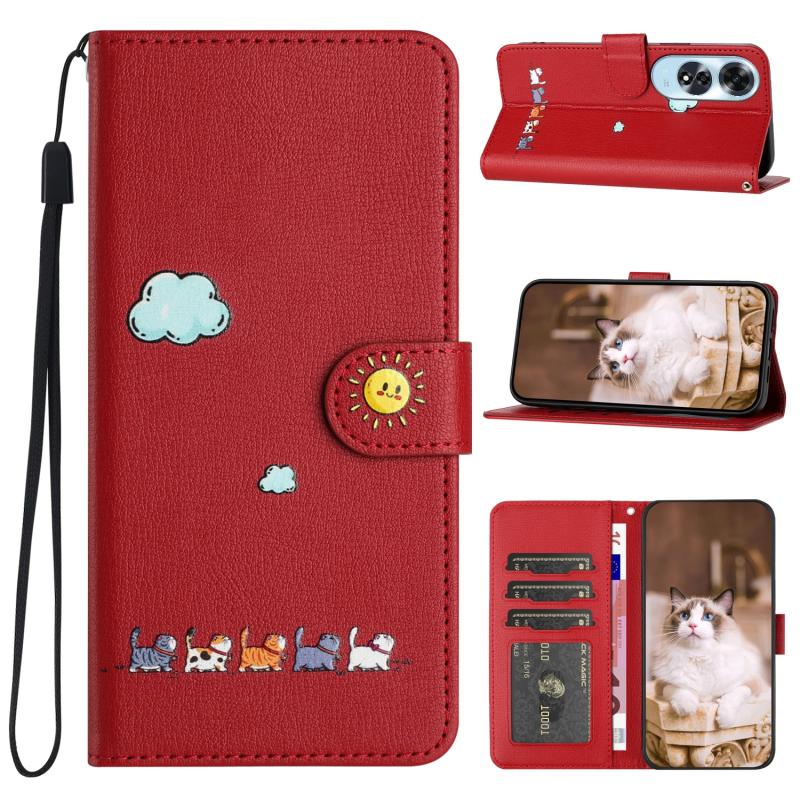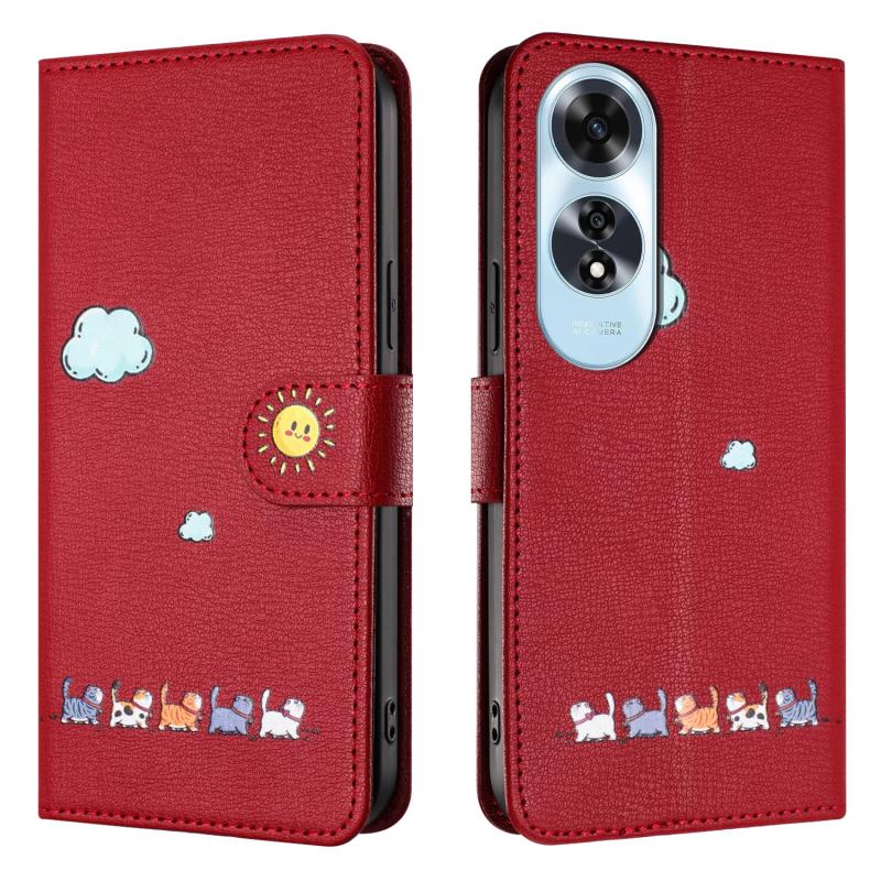 For OPPO A60 4G Cartoon Cats Leather Phone Case(Red)
