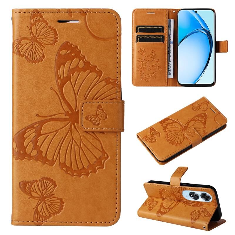 Για OPPO A60 4G Παγκόσμια 3D πεταλούδα ανάγλυφο μοτίβο Flip δέρμα τηλέφωνο υπόθεση (Κίτρινο)