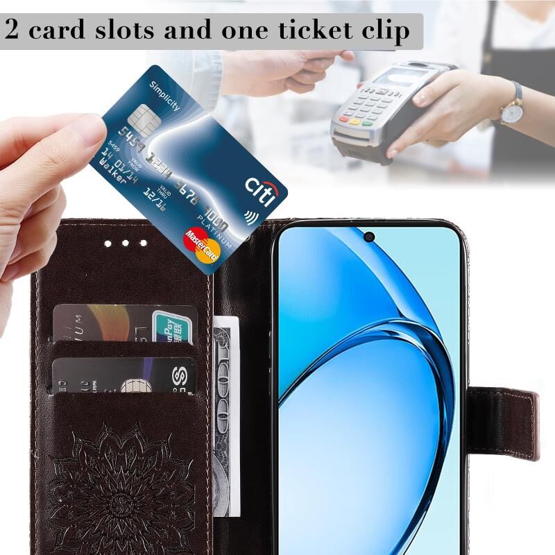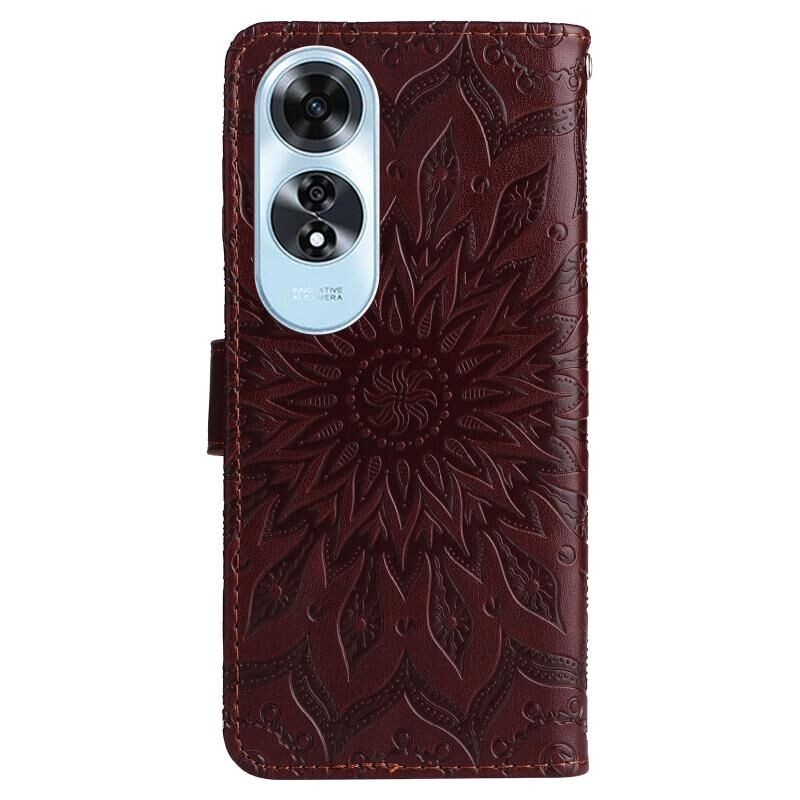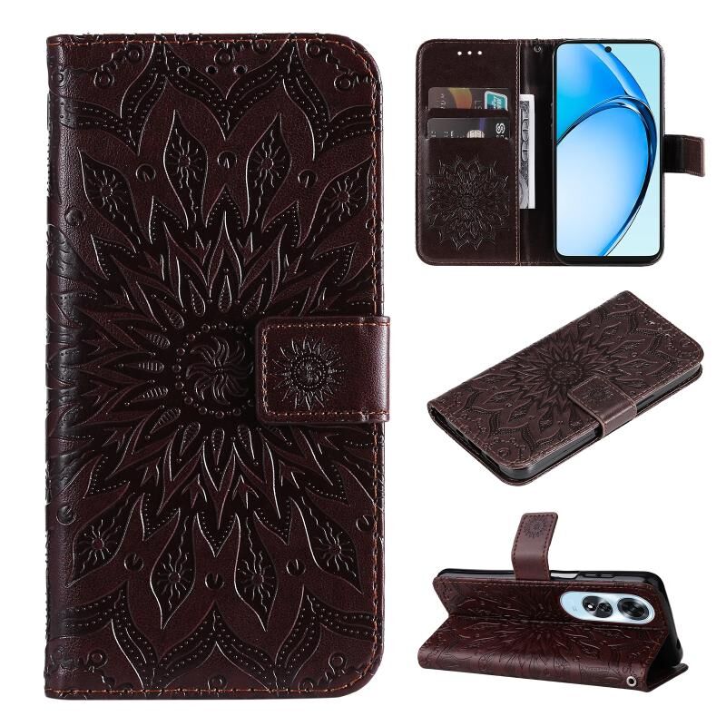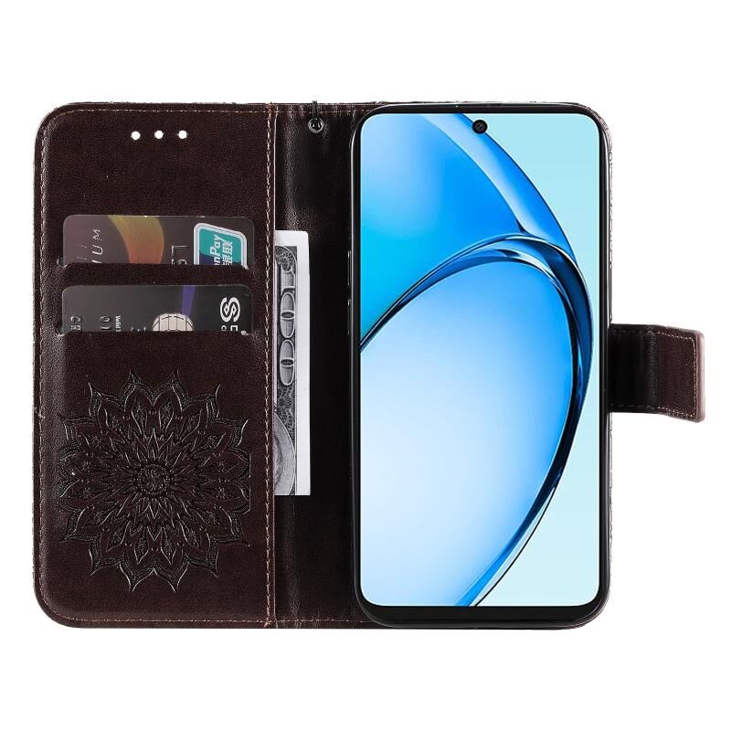 Θήκη τηλεφώνου από δέρμα με σχέδιο ηλιοτροπίου σε ανάγλυφο για OPPO A60 4G Global (Μωβ)
