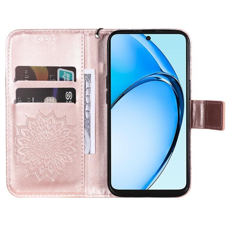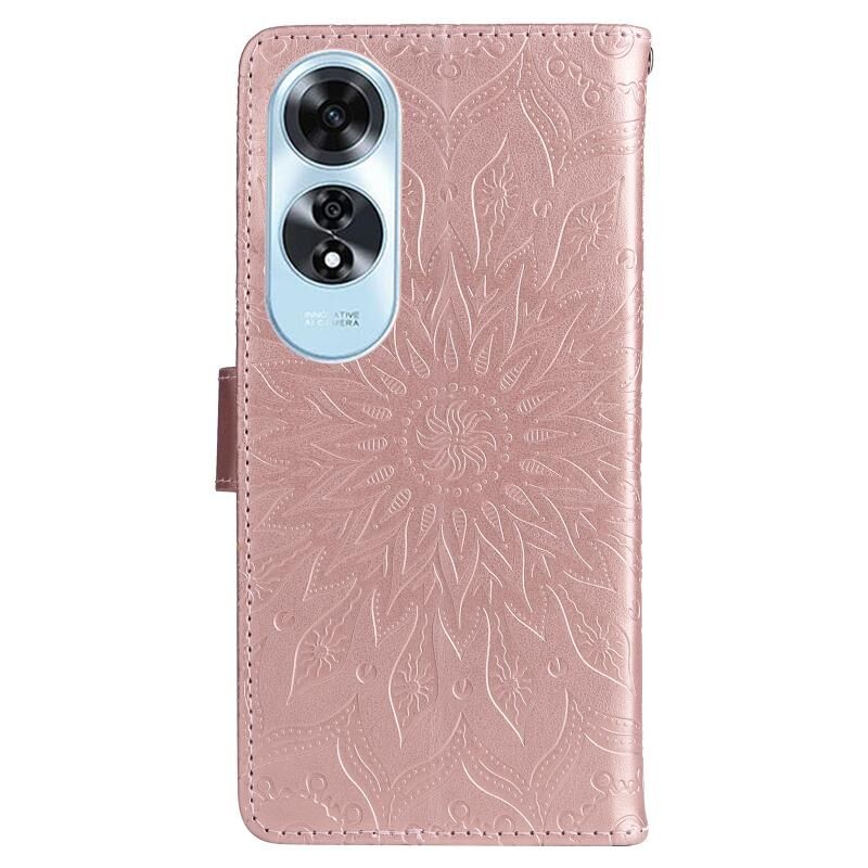 Θήκη τηλεφώνου από δέρμα με σχέδιο ηλιοτροπίου σε ανάγλυφο για OPPO A60 4G Global (Μωβ)