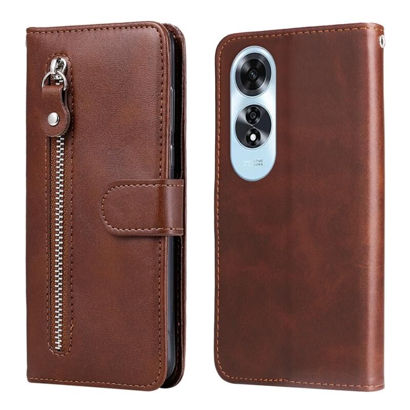 Για OPPO A60 4G Παγκόσμια μόδα μοσχάρι υφή φερμουάρ δερμάτινη θήκη τηλεφώνου (καφέ)