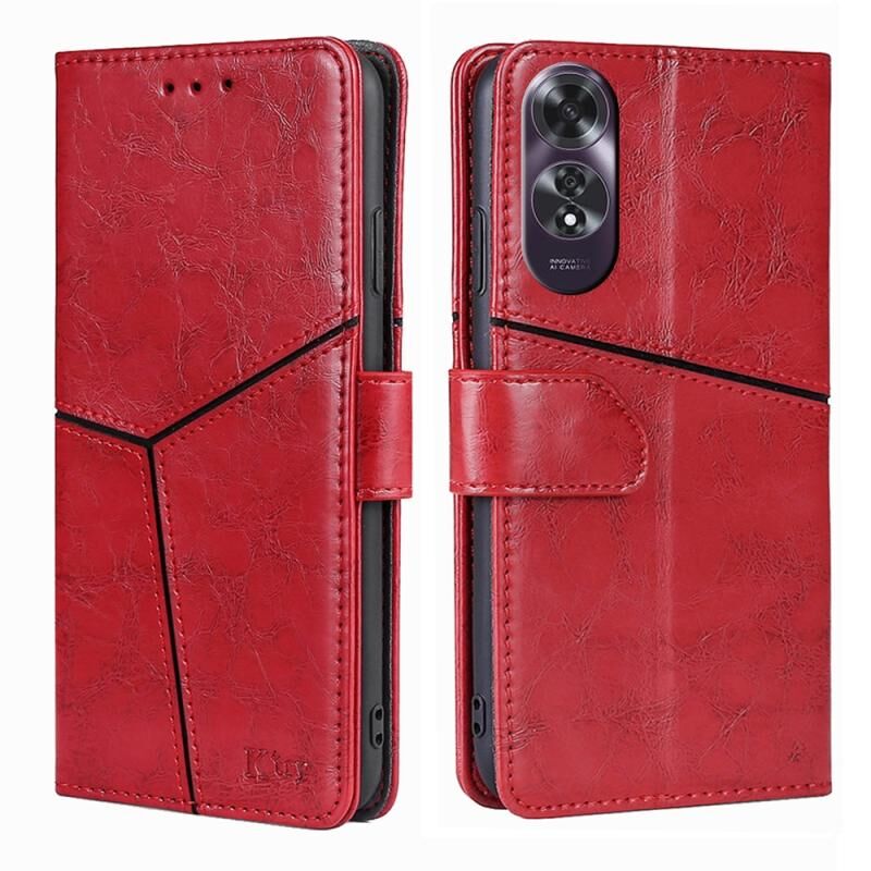 Για OPPO A60 4G Παγκόσμια γεωμετρική ραφή δερμάτινη θήκη τηλεφώνου (κόκκινο)