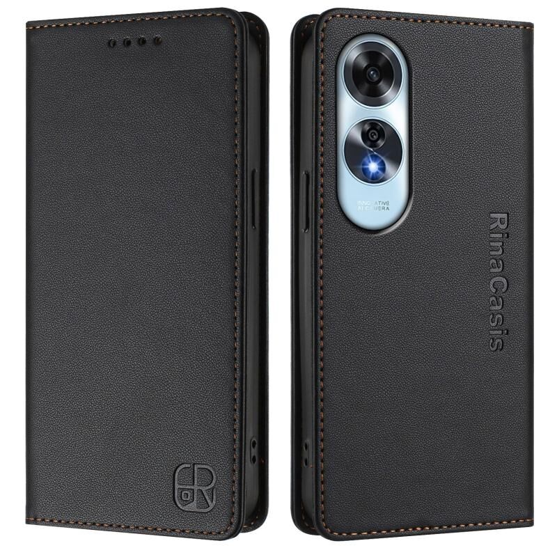 Θήκη τηλεφώνου δερμάτινη με μαγνητική απορρόφηση και διπλή πτυχή για OPPO A60 4G Global RC01 (Μέντας Πράσινο)