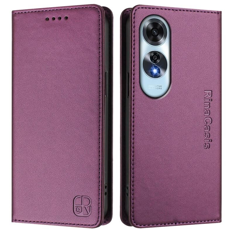 Θήκη τηλεφώνου δερμάτινη με μαγνητική απορρόφηση και διπλή πτυχή για OPPO A60 4G Global RC01 (Βιολετί)
