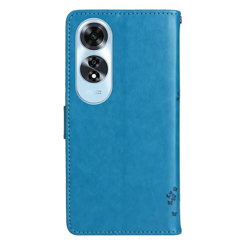 Θήκη τηλεφώνου από δέρμα με σχέδιο ανάγλυφου δέντρου & γάτας για OPPO A60 4G (Ροζ)