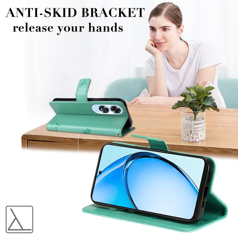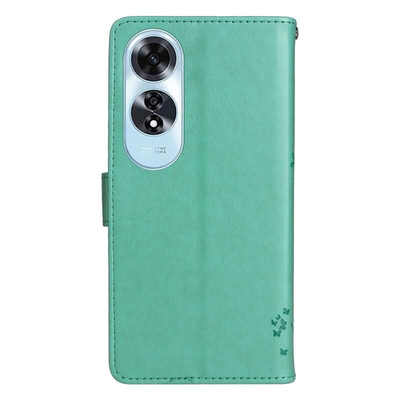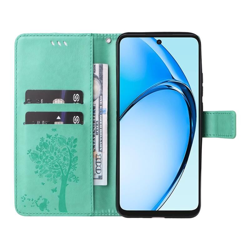 Θήκη τηλεφώνου από δέρμα με σχέδιο ανάγλυφου δέντρου & γάτας για OPPO A60 4G (Ροζ)