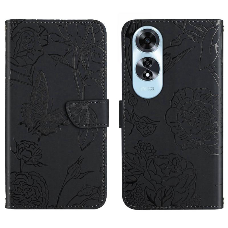 For OPPO A60 4G HT03 Skin Feel Butterfly Embossed Flip Leather Phone Case(Black)