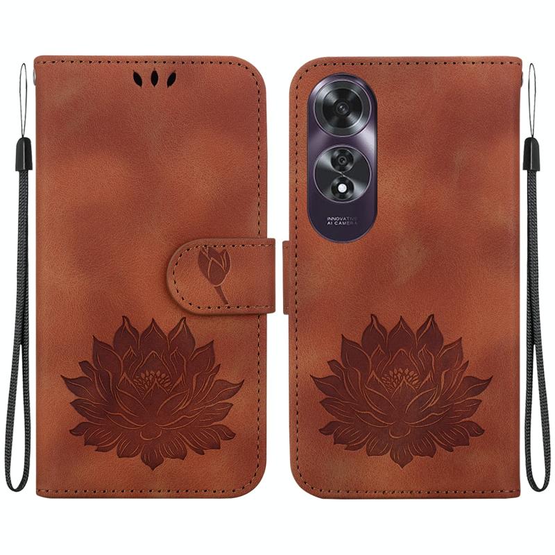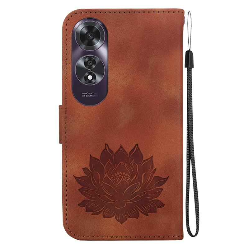 For OPPO A60 4G Lotus Embossed Leather Phone Case(Brown)