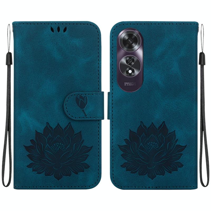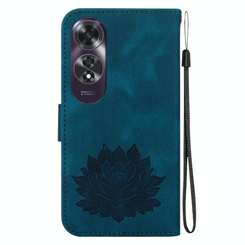 For OPPO A60 4G Lotus Embossed Leather Phone Case(Dark Blue)