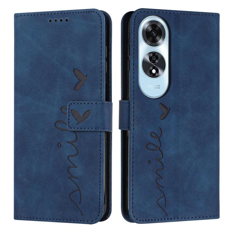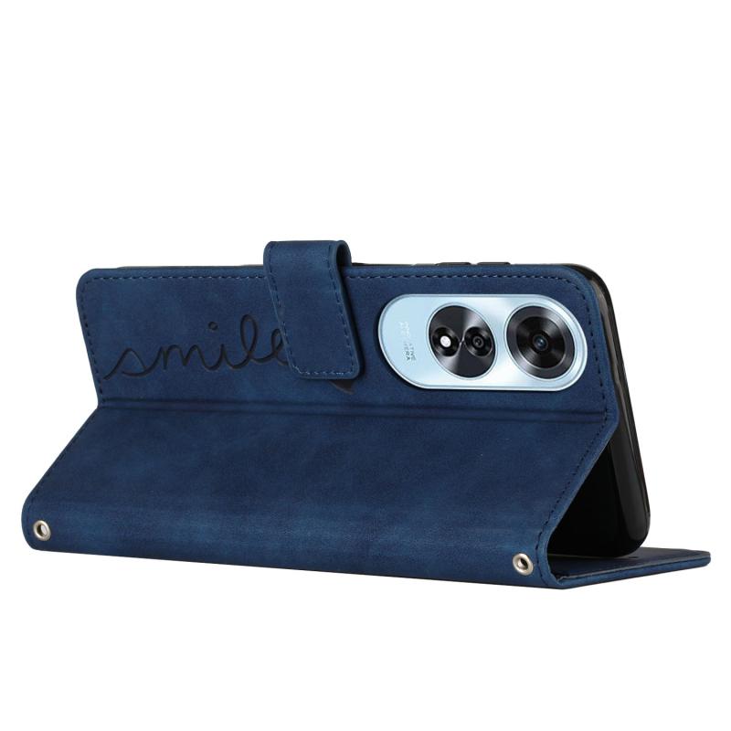 For OPPO A60 4G Skin Feel Heart Embossed Leather Phone Case with Long Lanyard(Blue)