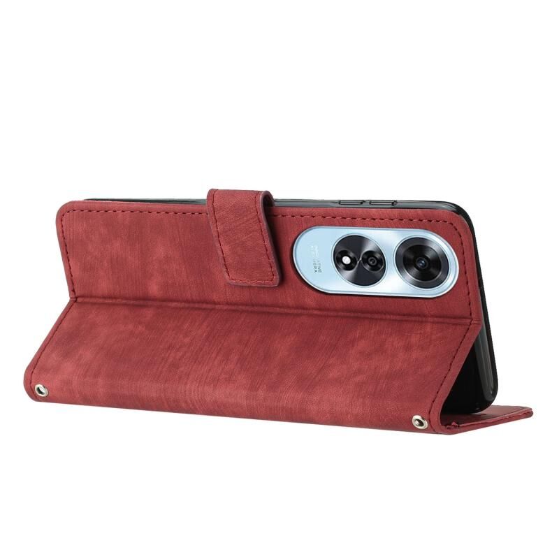 Για OPPO A60 4G δέρμα αίσθηση λωρίδα μοτίβο δερμάτινη θήκη τηλεφώνου με κορδόνι (κόκκινο)