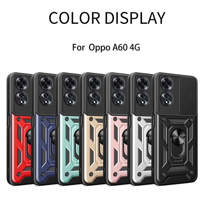 Θήκη κινητού τηλεφώνου για OPPO A60 4G, υβριδική από TPU και PC, με σχεδιασμό ολισθαίνουσας κάμερας (Μέντα Πράσινο)