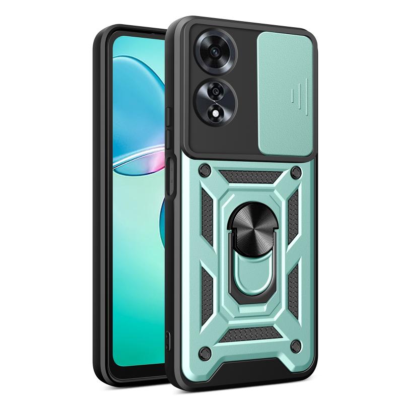 For OPPO A60 4G Sliding Camera Cover Design TPU Hybrid PC Phone Case(Mint Green)