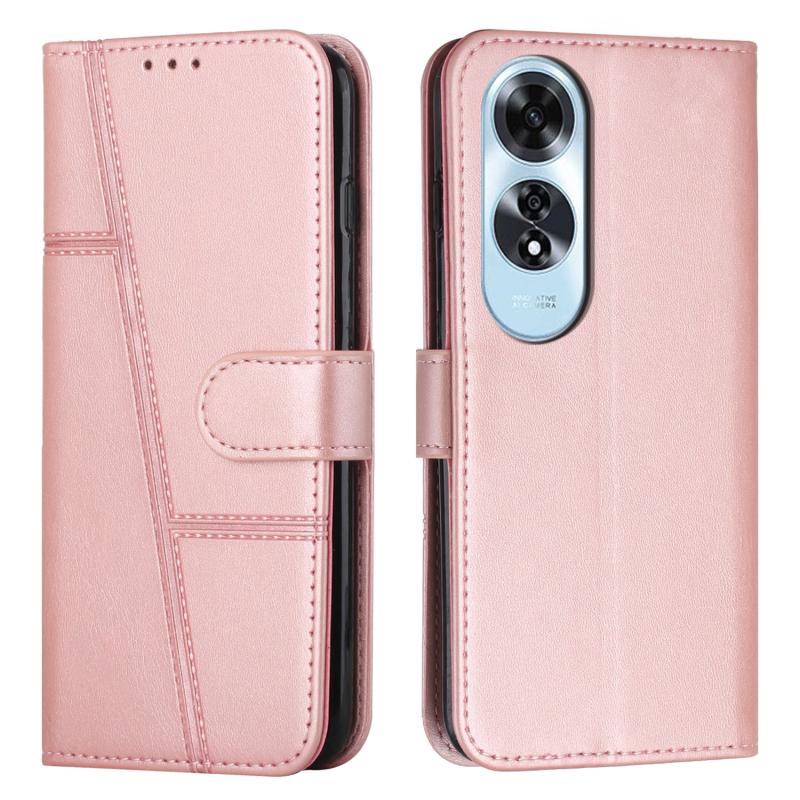 For OPPO A60 4G Stitching Calf Texture Buckle Leather Phone Case(Rose Gold)