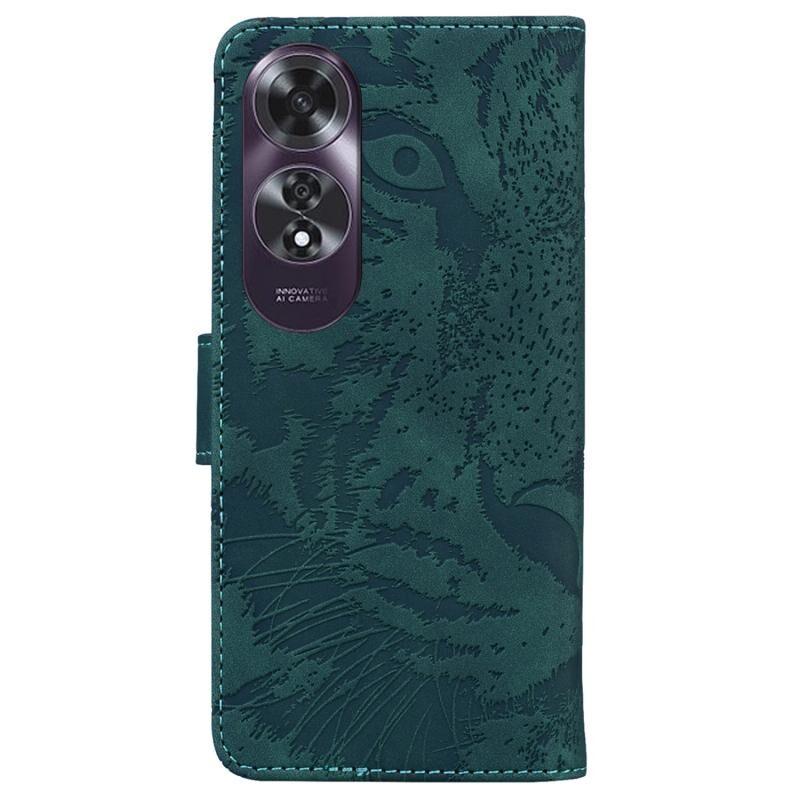 Θήκη τηλεφώνου από δέρμα με σχέδιο Tiger Embossing για OPPO A60 4G (Μαύρο)
