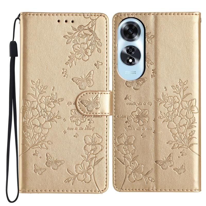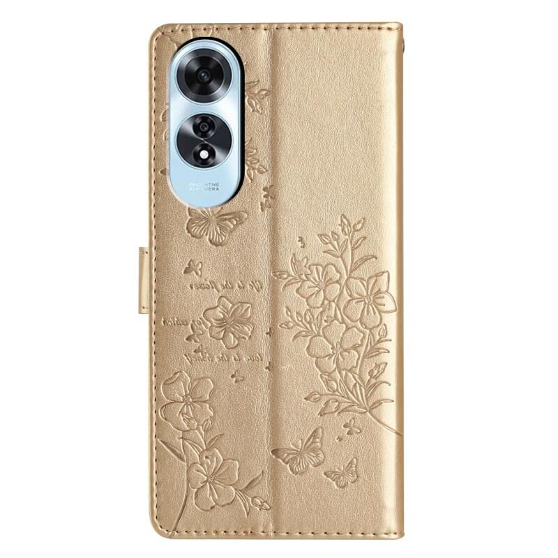Θήκη τηλεφώνου από δέρμα με πεταλούδες και λουλούδια για OPPO A60 (Χρυσό)
