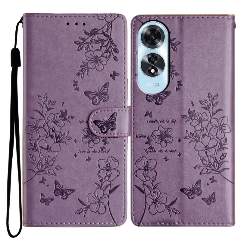 Θήκη τηλεφώνου από δέρμα με πεταλούδες και λουλούδια για OPPO A60 (Χρυσό)
