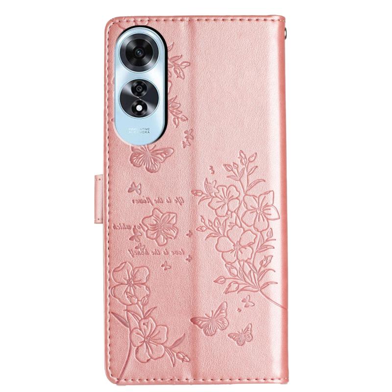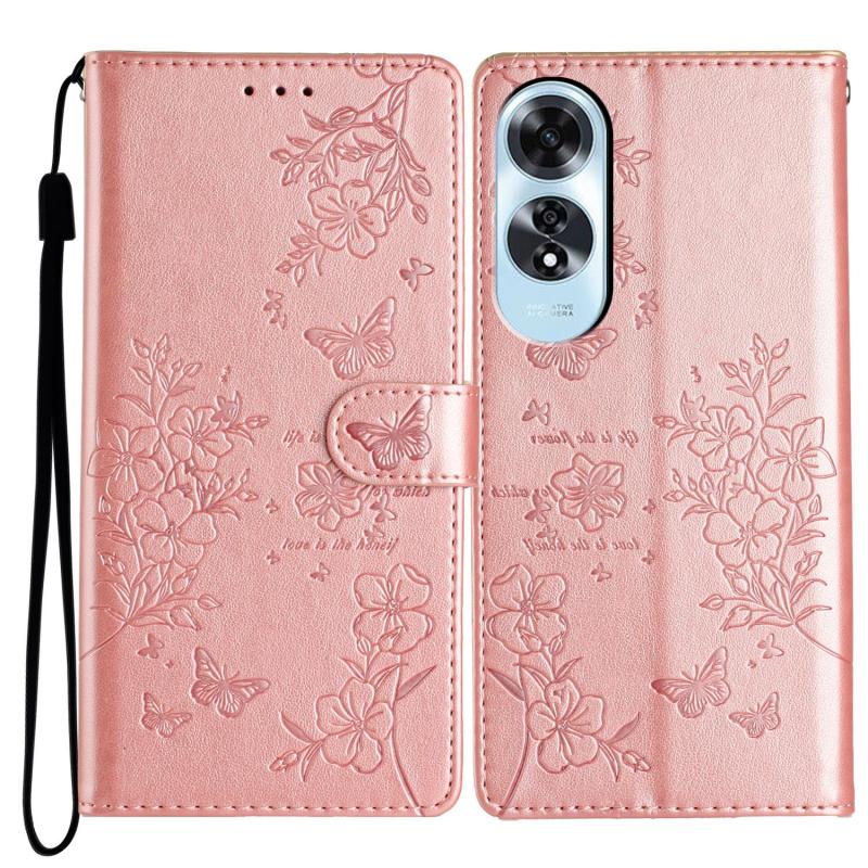 For OPPO A60 Butterflies and Flowers Leather Phone Case(Rose Gold)