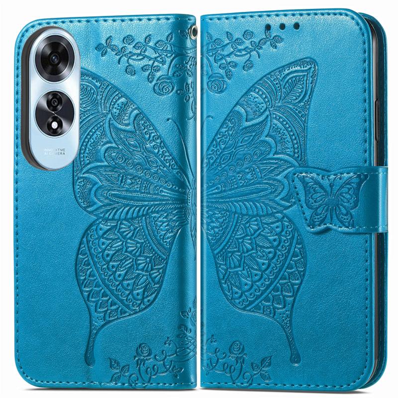 For OPPO A60 Butterfly Love Flower Embossed Leather Phone Case(Blue)
