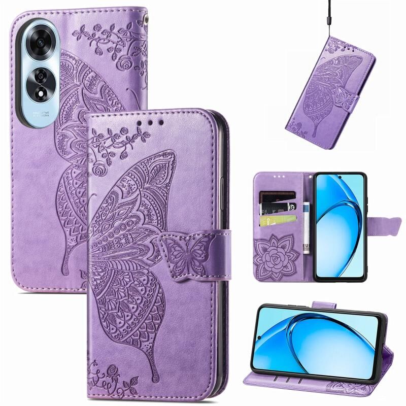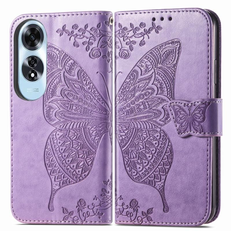 For OPPO A60 Butterfly Love Flower Embossed Leather Phone Case(Light Purple)