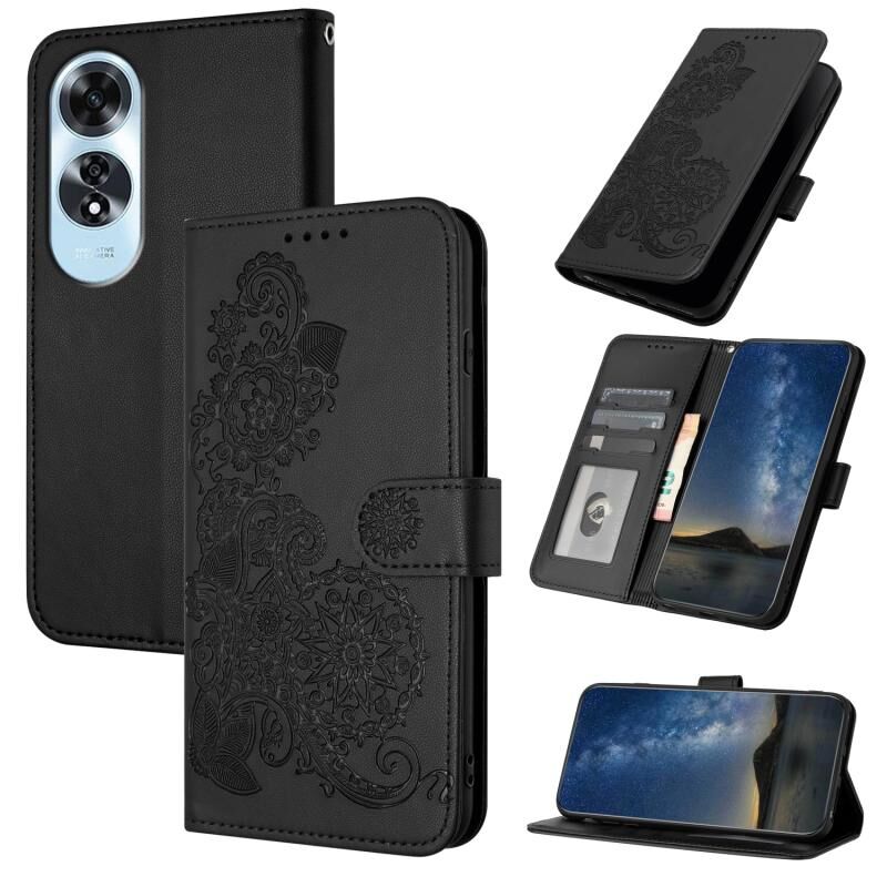 For OPPO A60 Datura Flower Embossed Flip Leather Phone Case(Black)