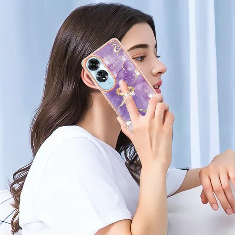 Θήκη τηλεφώνου OPPO A60 με Ηλεκτρολυτική Επιμετάλλωση, Μάρμαρο IMD, TPU με Δακτύλιο Στήριξης (Μωβ 002)