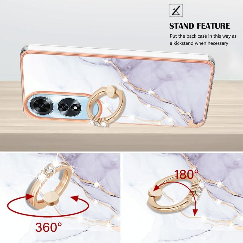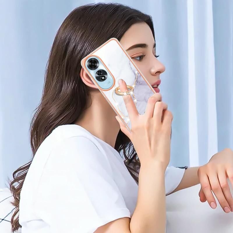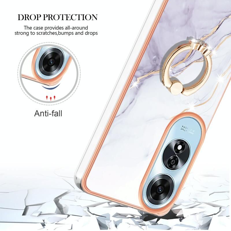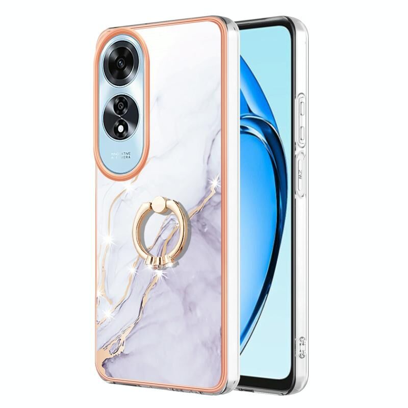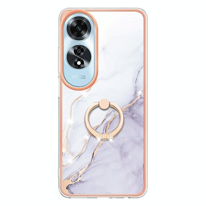 Θήκη τηλεφώνου OPPO A60 με Ηλεκτρολυτική Επιμετάλλωση, Μάρμαρο IMD, TPU με Δακτύλιο Στήριξης (Λευκό 006)