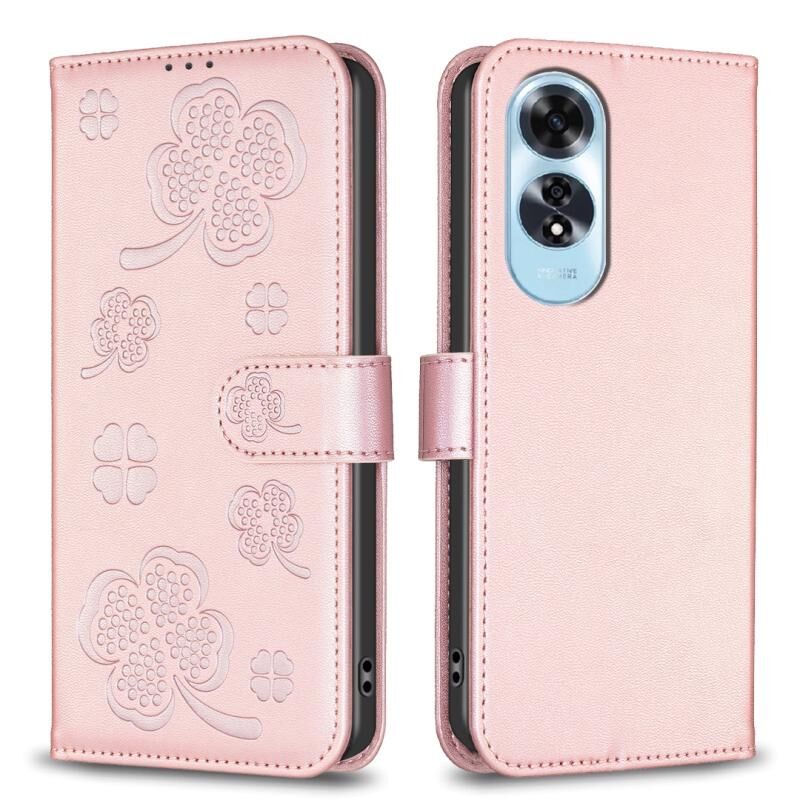 Για OPPO A60 τεσσάρων φύλλων ανάγλυφο δερμάτινη θήκη τηλεφώνου (ρόζ)