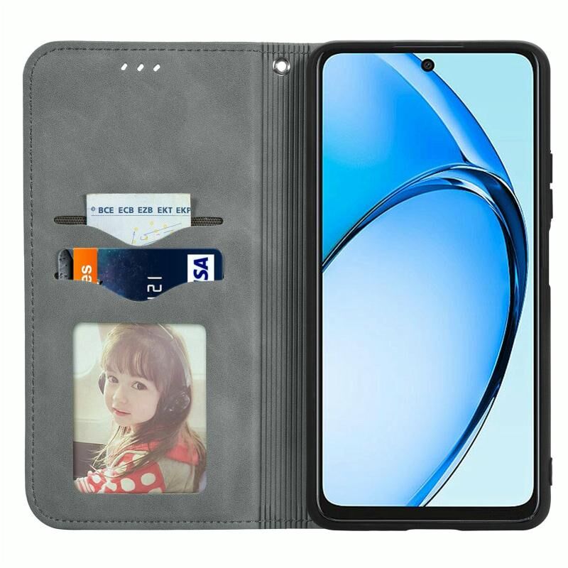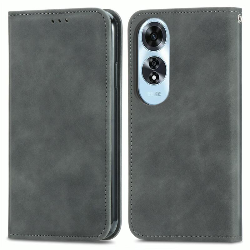 Για OPPO A60 Ρετρό δέρμα αίσθηση μαγνητική Flip δέρμα τηλέφωνο υπόθεση (Γκρι)