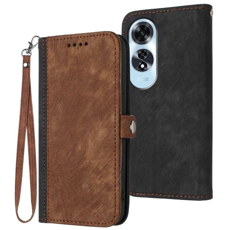 Θήκη τηλεφώνου από δέρμα με διπλό πτυσσόμενο λουρί χειρός και πλευρική αγκράφα για OPPO A60 (Καφέ)