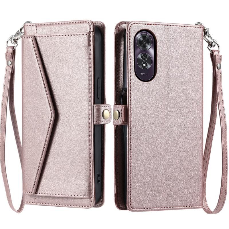 Για OPPO A60 Πορτοφόλι Multi-card Slot Δερμάτινη θήκη τηλεφώνου με κορδόνι (Ροζ χρυσός)