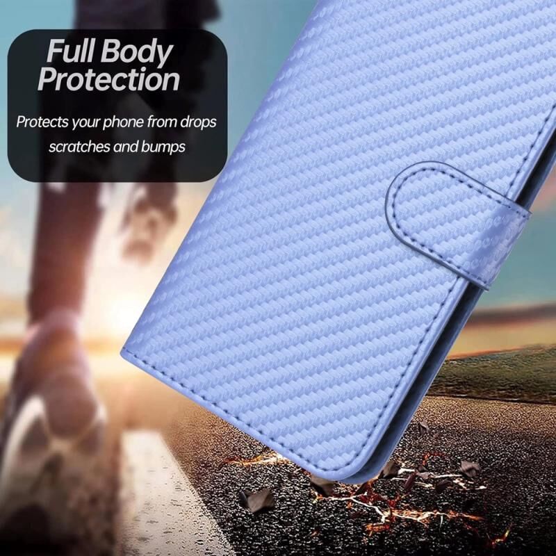 Θήκη τηλεφώνου από δέρμα με ανθρακονήματα και λουρί για OPPO A60 YX0070 (Κόκκινο)