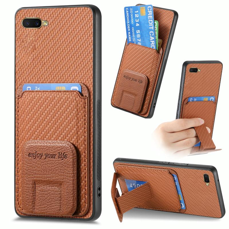Θήκη για OPPO A7/A12 Carbon Fiber με Κάρτες & Στήριξη (Καφέ)