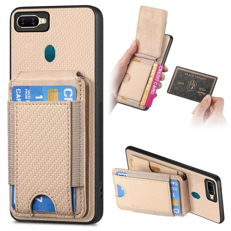 Θήκη τηλεφώνου τύπου πορτοφολιού με κάθετη αναδίπλωση από ανθρακονήματα για OPPO A7 / A12 (Χακί)