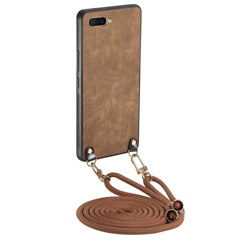 Θήκη κινητού τηλεφώνου OPPO A7 / A12 από δέρμα vintage και PC με λουρί crossbody (Καφέ)