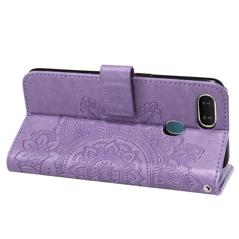 Για OPPO A7 / A5s 7-πέταλα λουλούδια ανάγλυφο μοτίβο οριζόντια Flip PU δέρμα υπόθεση με θήκη & υποδοχές για κάρτες & πορτοφόλι & πλαίσιο φωτογραφιών (ανοιχτό μοβ)