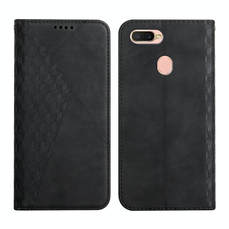 Για OPPO A7 / A5s / A12 Diamond Pattern Splicing Skin Feel Μαγνητική οριζόντια Flip δερμάτινη θήκη με υποδοχές καρτών & κάτοχος & πορτοφόλι (μαύρο)