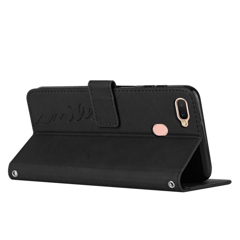 Για OPPO A7 / A5S / A12 δέρμα αισθάνονται καρδιά μοτίβο δερμάτινη θήκη τηλεφώνου με κορδόνι (μαύρο)
